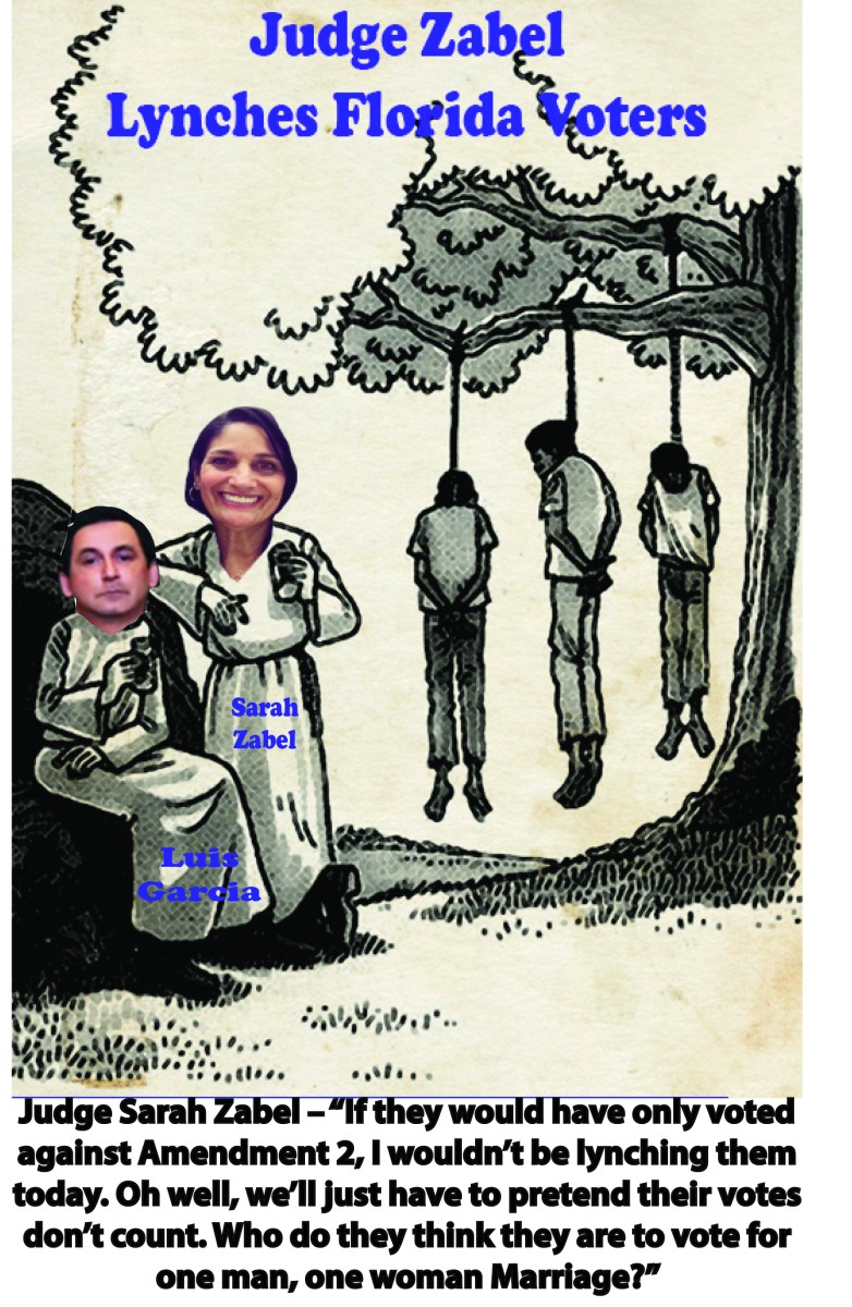 Jusges Zabel and Garcia trade their black judge’s robe for a white KKK robe.